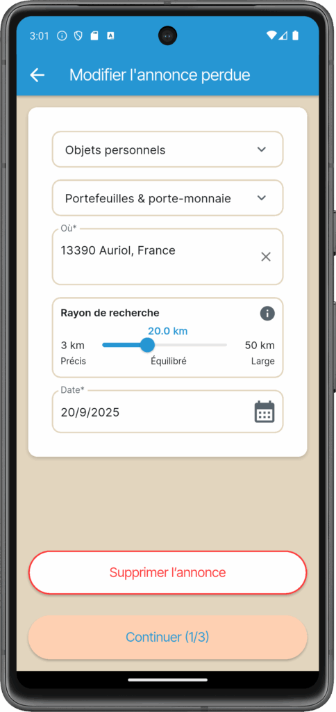 Les annonces sont visibles par les utilisateurs proches de ta zone, pour maximiser les chances de le retrouver rapidement.