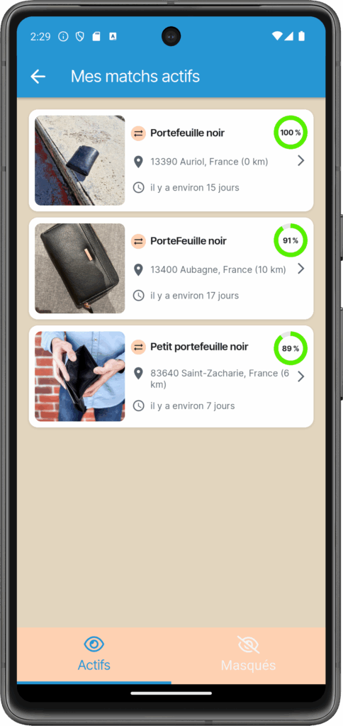 Les annonces restent actives jusqu’à ce que tu les marques comme retrouvées ou masquées.